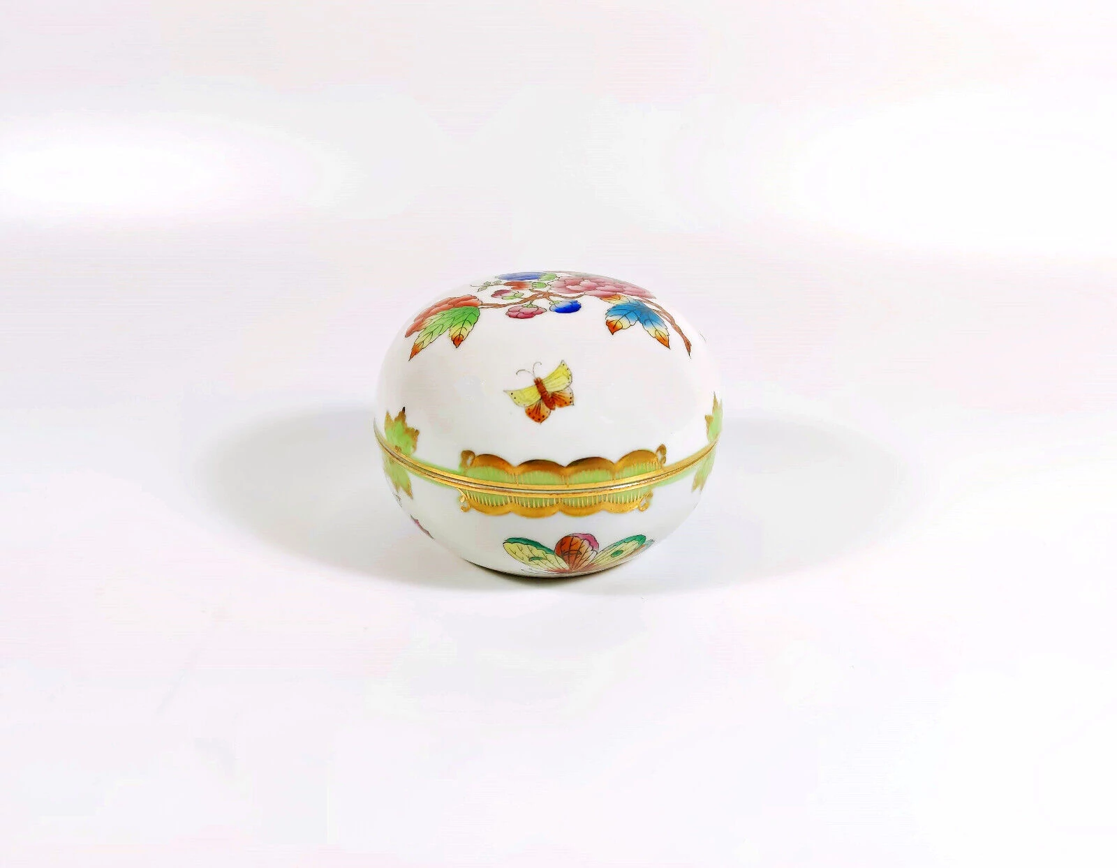 HEREND, QUEEN VICTORIA (VBO) BONBONNIERE 3.6", HANDPAINTED PORCELAIN ! (A016)