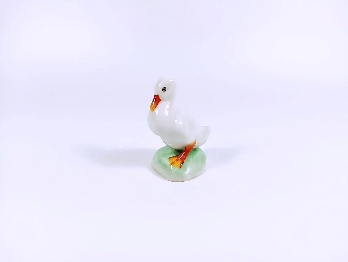 HEREND, WHITE DUCK, ANTIQUE HANDPAINTED PORCELAIN FIGURINE, 1943 (H118) Mark / Sign : Signed Herend First Class Blue Shield Mark and Incised "HEREND" Modell No. 5022 ! Condition : Excellent, No Chips, No Cracks or Repairs ! Size CCA. Inches / Centimeters Height : 2.56" / 6.5 cm. Length : 1.77 " / 4.5 cm. Width : 1.30" / 3.3 cm.