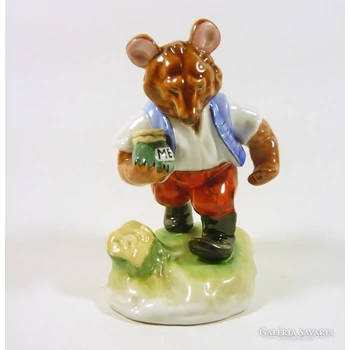 | HEREND, BEAR WITH HONEY JAR 5.5", ARTIST SIGNED HANDPAINTED PORCELAIN FIGURINE ! Mark / Sign : Signed Herend First Class Blue Shield Mark and Incised "HEREND" Modell No. 5342 ! Condition : EXCELLENT, No Chips, No Cracks or Repairs ! Size CCA. Inches / Centimeters Height : 5 .51" / 14.0 cm. Length : 3.54" / 9.0 cm. Width : 3.54" / 9.0 cm. | |